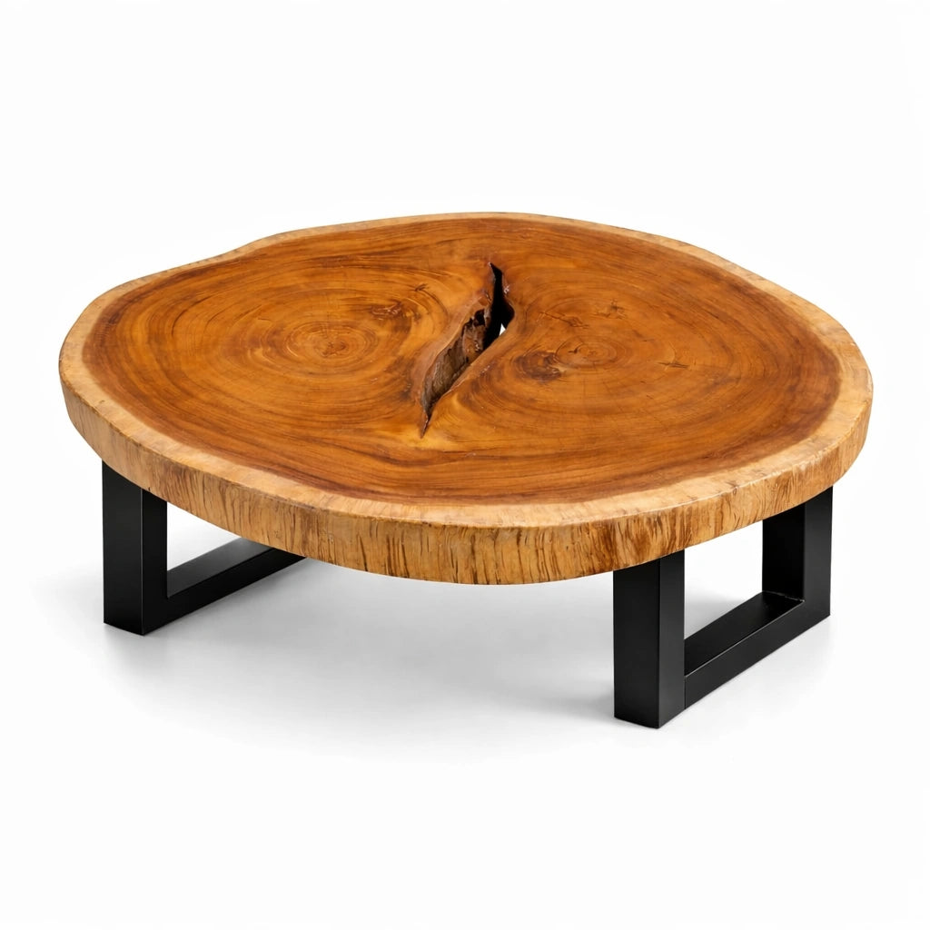 Dieser Couchtisch ist kein Produkt von der Stange, sondern ein Kunstwerk, das über Jahrzehnte von der Natur gestaltet wurde. Die lebendigen Jahresringe, das handschmeichelnde Holz und das Herzstück – ein markanter, natürlich entstandener Spalt – machen ihn zu einer Hommage an das Leben selbst. Gefertigt aus einer einzigen, unverleimten Akazien-Baumscheibe, ist jedes Exemplar ein Statement für Individualität und Zeitlosigkeit.
